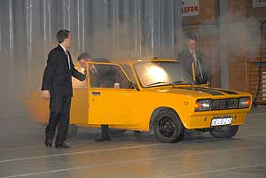 2012. február 10-én került megrendezésre a Pollák Antal Műszaki Szakközépiskola szalagavató bálja. Az iskola műszaki jellege miatt feltételezhető, hogy a nemek aránya nem kiegyenlített :-), így minden évben a nyitó keringő megszervezése jelenti a legnagyobb gondot. Ezt sokan így gondolnák, de a sármos fiatal Pollákosoknak ez nem jelent akadályt, mert más iskolákból importálnak (ha csak egy tánc erejéig is) hölgyeket. Ha valaki megszokott szalagavatóra vágyik, akkor ő ne a Pollák rendezvényére jöjjön, mert minden évben más-más ötlettel dobják fel az ünnepséget a fiúk. Idén egy sárga Lada gurult a parkettre, melyből nyolcan ugráltak ki. Szóval fergeteges, humorral tűzdelt szalagavató ünnepséggel ünnepeltek a végzős hallgatók. Katt a képre! Szentes, 2012. 02. 16. Tornyok magasában Erdélyben
