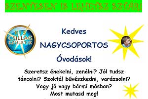 A Klauzál Gábor Általános Iskola nagyszabású tehetségkutató versenyt szervez 2012. március 3-án, szombaton 14 órától az iskola tornatermében. Jelentkezhetnek nagycsoportos óvodások, akik szeretnek énekelni, táncolni, zenélni, bűvészkedni, tornázni vagy bármiben jeleskednek. Nevezni egyéni vagy csoportos produkcióval február 18-ig lehet az óvó néniknél. Jelentkezési lap letölthető az iskola honlapjáról is: http://ww3.szentes.hu/klauzal Senki nem távozik üres kézzel! Készülj, és figyeld a további információkat!