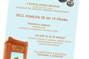 2012. február 18-án a Koszta József Múzeumban újra megszólal a zenegép. Már hagyomány, hogy minden évben Zsuzsanna napjához közeledve, Szentesen nem a pacsirta dalolását várjuk, hanem, hogy újra megszólaljon a múzeumban lévő Susanna nevű zenegép. Mivel az ipartörténeti emlék szerkezete egy óramű, így jött az ötlet, hogy egy egyedülálló előadást szervezzenek az időről és az Ő méréséről. A műhelytitkokban és szakmai érdekességekben Vidovics Ferenc órásmester kalauzolja a laikusokat és a műszaki érdeklődésűeket.