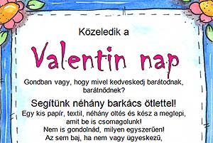 Közeledik a Valentin Nap! Gondban vagy, hogy mivel kedveskedj barátodnak, barátnődnek? Segítünk néhány barkács ötlettel! Egy kis papír, textil, néhány öltés és kész a meglepi, amit be is csomagolunk! Nem is gondolnád, milyen egyszerűen! Az sem baj, ha nem vagy ügyes kezű, annál szerethetőbb lesz az ajándék! Várunk a Városi Könyvtárba (Szentes, Kossuth u. 33-35. Zsinagóga) 2012. 02. 13-án hétfőn 15.30-tól 18-ig. Egy óra alatt bőven kész lesz! Még egy tuti indok: ingyen van!