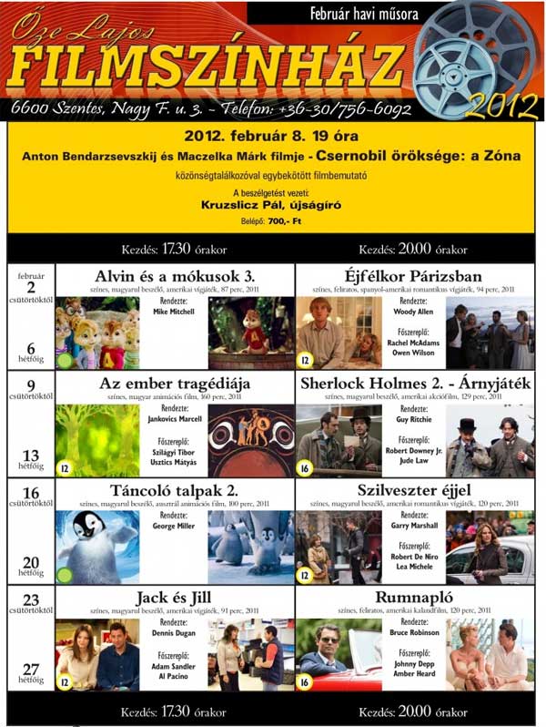 Őze Lajos Filmszínház 6600 Szentes, Nagy Ferenc u. 3. Tel.: 63/312-140