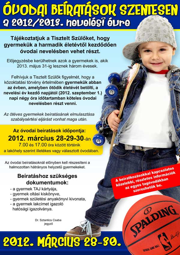 ÓVODAI BEÍRATÁSOK SZENTESEN a 2012/2013. nevelési évre
