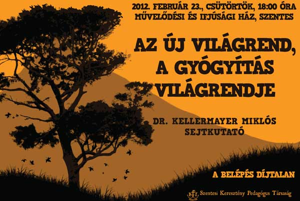 2012. február 23-án csütörtökön minden érdeklődőt vár a Keresztény Pedagógus Társaság a Művelődési és Ifjúsági Házba Dr. Kellermayer Miklós sejtkutató előadására.