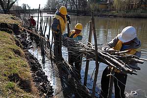 Már évek óta látszódik, hogy nem odázható tovább a Kurca partfalának megerősítése. Ezért közel 60 cm-el alacsonyabb vízállást tartanak a folyó érintett szakaszán, hogy a munkálatokat el tudják végezni az Alsó-Tisza-vidéki Vízügyi Igazgatóság Szentesi Szakaszmérnökségének munkatársai. A partfal megerősítésében közreműködnek a város dolgozói is, mert a partrendezési feladatok rájuk hárulnak. A munka során fűzfakarók közé rőzsefonatot helyeznek el, mely nem csak megvédi a szél borzolta hullámoktól a partot, hanem megakadályozza annak leszakadását is.