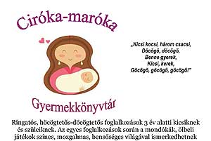Ringatós, höcögtetős-döcögtetős foglalkozások 3 év alatti kicsiknek és szüleiknek. Az egyes foglalkozások során a mondókák, ölbeli játékok színes, mozgalmas, bensőséges világával ismerkedhetnek meg a résztvevők. A foglalkozások 10.30 órakor kezdődnek, melyeken csak előzetes jelentkezéssel lehet részt venni. Amennyiben sok jelentkező van, lehetőség van másik időpontban eljönni a foglalkozásra.