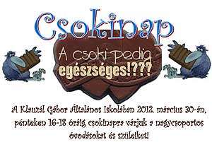 Minden nagycsoportos óvodást szeretettel várnak a Klauzál Gábor Általános Iskolában március 30-án, pénteken délután 4 órától 6 óráig az első Csokinapon. Aki szereti a gömbölyű, a lyukas, a szögletes, a mogyorós, a fehér és bármilyen csokoládét, valamint szeret kézműveskedni, mozogni, az ne habozzon! A részletes program a plakáton olvasható.