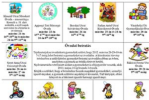 Tájékoztatjuk az óvodáskorú gyermekek szüleit, hogy 2012. március 28-29-30-án 7-17 óráig lehet beíratni a gyermekeket az óvodákba. A közoktatási törvény értelmében a szülő köteles gyermekét beíratni az óvodába abban az évben, amelyben a gyermek az ötödik életévét betölti. Nyilvántartásba vétel miatt azokat a gyermekeket is előjegyzésbe veszik, akik 2013. május 31-ig lesznek 3 évesek. Kérik a szülőket, hogy a beíratáshoz vigyék magukkal gyermeküket, személyi igazolványukat, a gyermek születési anyakönyvi kivonatát, TAJ kártyáját, oltási könyvét és a lakcímét igazoló hatósági igazolványát. Katt a képre! Szentes, 2012. 03. 04. Dr. Szalva Péter asztalitenisz emlékverseny
