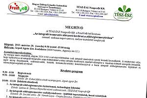 A TÉSZ-ÉSZ Nonprofit Kft. és a FruitVeB Magyar Zöldség-Gyümölcs Szakmaközi Szervezet március 28-án Szentesen „Az integrált termesztés időszerű kérdései a zöldségtermesztésben” címmel szakmai konferenciát szervez. A rendezvény célja, hogy hozzájáruljon az ágazati versenyképesség növekedéséhez, továbbá hogy tájékoztassa az integrált termesztés iránt érdeklődőket a téma aktuális kérdéseiről, illetve elősegítse a témában érdekelt szereplők (a termelők, az inputanyag-forgalmazók, a szaktanácsadók, a kutatók és a kormányhivatalok) konzultációjával a hazai integrált zöldségtermesztés fejlődését és versenyképességének növekedését. A rendezvény kiemelt témái között szerepel az integrált zöldségtermesztés szabályrendszere és technológiai feltételei, az integrált védjegyezés, valamint a biológiai védekezés és a mikrobiológiai készítmények alkalmazásának lehetőségei a zöldségtermesztésben. A rendezvényen való részvétel díjtalan, de előzetes regisztrációhoz kötött – közölte a szakmaközi szervezet. Katt a képre! Szentes, 2012. 03. 07. Március 6. a Logopédusok Napja Szentesen hét logopédus dolgozik a beszédhiba/-zavar/-fogyatékosság ellen!