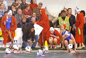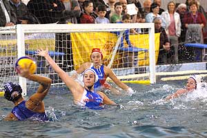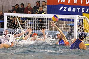 A második számú kontinentális sorozat elődöntőjének első mérkőzésén a 11-8-as itáliai sikert hozó meccs legjobbjaként Stieber Mercedes, az Imperia világ- és Európa-bajnok magyar légiósa négyszer is eredményes volt honfitársai ellen, már csak ezért is figyelem övezte mostani szentesi vendégszereplését – a parton is, de még inkább a vízben. A szoros őrizet közepette viszont a három friss Európa-bajnokkal felálló olasz együttes más tagjai éltek a lehetőségeikkel, és előbb Keszthelyi Rita meccsnyitó gólját követően egyenlítettek, majd 2-2 után a vezetést is átvették a vendégek, igaz, nem sokáig (3-3).