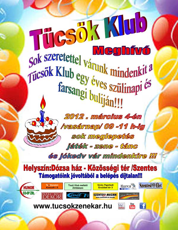 A zord időjárás miatt elmaradt Tücsök Party-t 2012. március 4-én tartják meg a Dózsa-ház Közösségi téren. Minden ünneplőt szeretettel várnak egy kis farsangi születésnapi bulira!