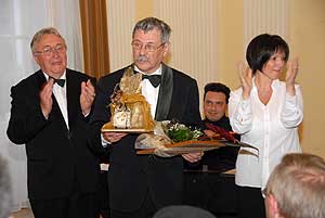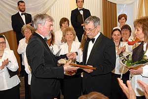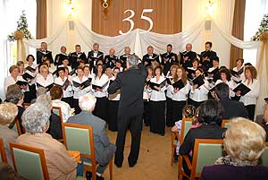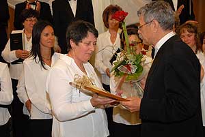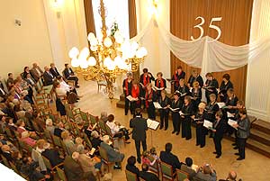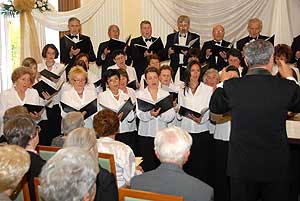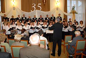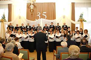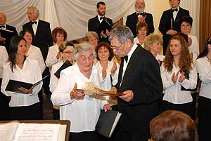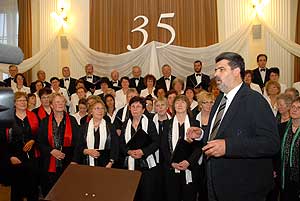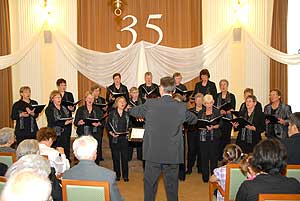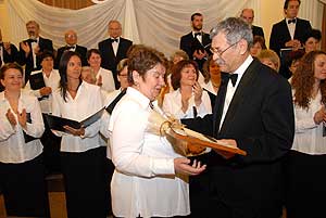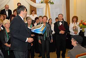 Az évforduló alkalmából emléklappal és virággal köszöntötték a vegyeskar ma is éneklő aktív alapító tagjait.
