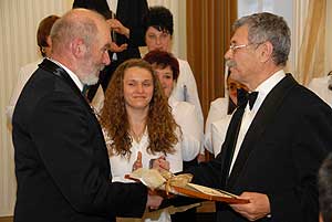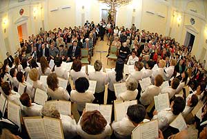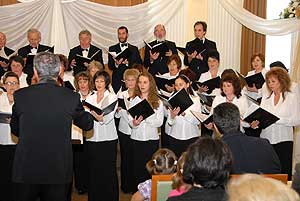 Az összkar előtt az önkormányzat nevében Móra József köszöntötte a Vegyeskart.