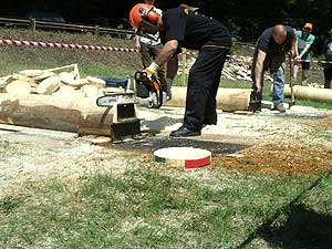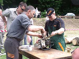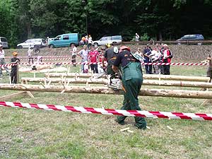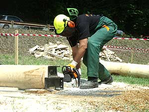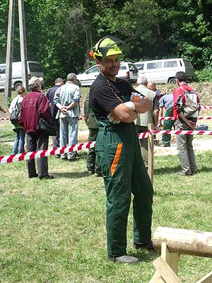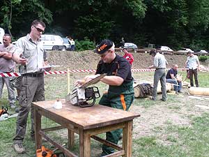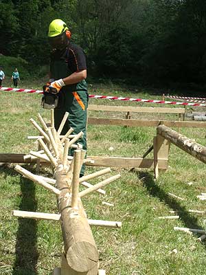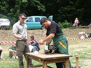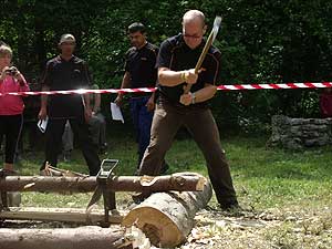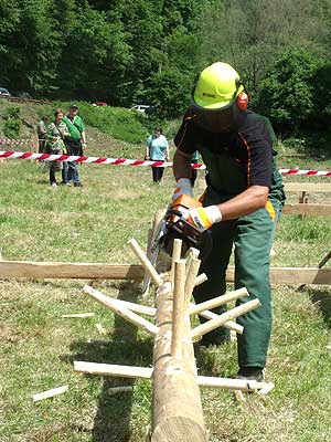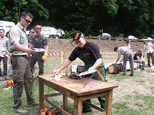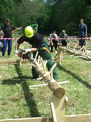 A Fekete Csaba, Balázs Csaba, Csapi László alkotta csapat hét erdei munkát szimuláló versenyszámban mérette meg magát: keresztvágó fűrészelés; fejszés darabolás; hasítás, sarangolás (az igazán „nagyok” nem cipelték a megadott vonalon túlra a félbe hasított méteres fákat, hanem egyenest áthajították); lánccserélés (ha eközben valakinek megsérül a keze, ráadásképp még 50 hibapontot is beszerez); kombinált darabolás, lánckímélő darabolás, gallyazás.