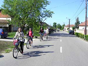 Május 19-én reggel, a Kossuth téri gyülekező után rendőrségi biztosítással indultunk el Szarvas irányába. Első pihenőnk Kajánújfaluban volt. Sajnos a régi törzshelyünk az iskola magánkézbe került, ezért másik helyet kellett választani a pihenésre. Következő megállónk a cserebökényi tehenészet, ahol üszőneveléssel foglalkoznak. A megyehatárt elhagyva, már pihenő nélkül tekertünk el szálláshelyünkre, a szarvasi ifjúsági táborba. Miután elfoglaltuk táborhelyünket Arborétum látogatás, hajókázás a Körösön volt a program. Esti visszaérkezésünk után tüzet gyújtottunk és megsütöttük a sütnivalónkat, egy kis szalonnát, virslit és grillhúsokat. Vasárnap délelőtt áttekertünk Békésszentandrásra és meglátogattunk a Gödényhalmot. Ez régi táborozásaink célpontja volt még abból az időből, amikor a Veresházi majorban sátraztunk Medgyesi tanár úrral a kerékpártúráink alkalmával. Ebéd után kajakozás, kenuzás, Kreszvetélkedő volt a program, ahol a következő eredmények születtek: