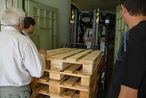 Ott óvatosan a galéria párkányára lett átcsúsztatva, majd hat markos fiatalember emelte le onnan.