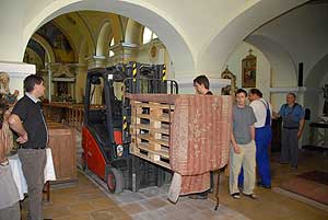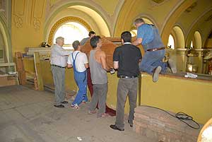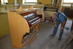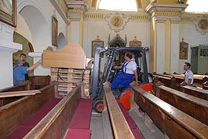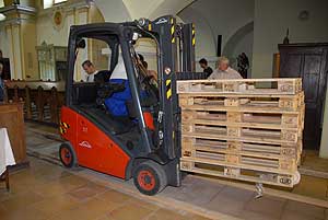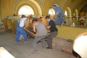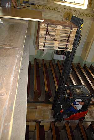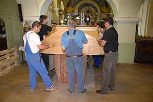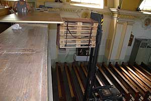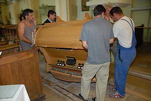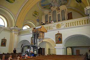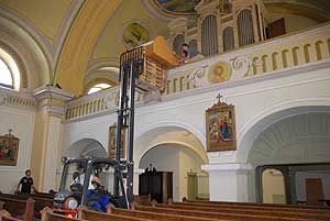 Nem volt egyszerű mozzanat a játszóasztal helyére emelése. Először is egy targoncát kellett bejuttatni a templom belsejébe, melynek köszönhetően sikerült a több mint 220 kg-os orgonaalkatrészt a 7 méteres magasságba felemelni.