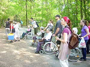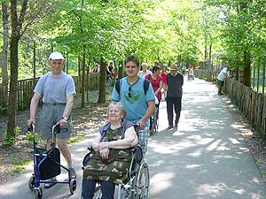 Nagy népszerűségnek örvendett a párduc, a zsiráf, a teve, de a színes papagájok, a szurikáták és struccok mellett is sokáig elidőztek a kirándulók. Nem kis élményt adtak az úszkáló pingvinek, a lámák, a tapírok. Az ebédet a hűs fák alatt fogyasztottuk el, majd folytattuk utunkat a park tava felé.