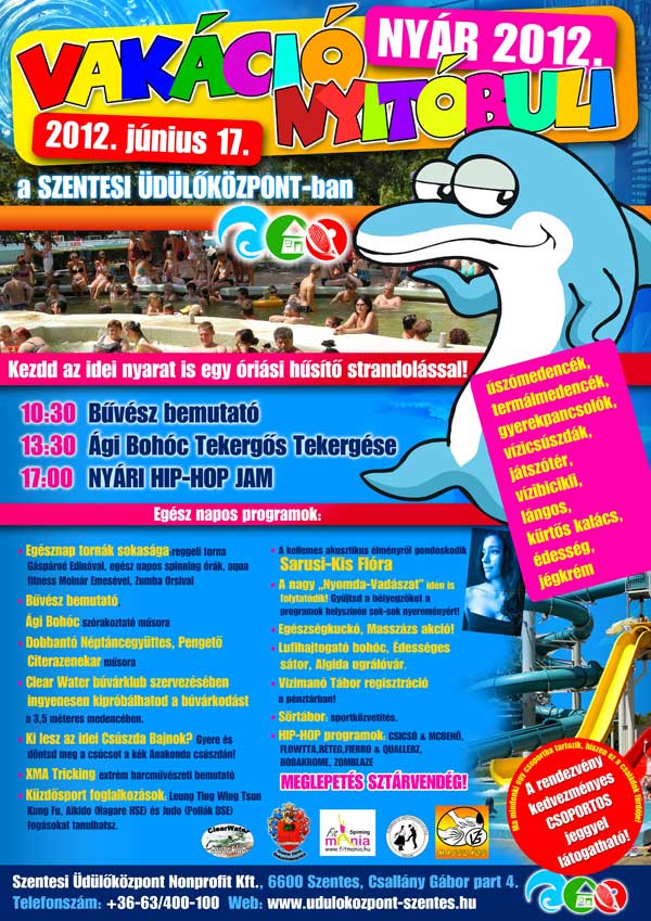 2012. június 17-én kezdődik meg Szentesen hivatalosan is a VAKÁCIÓ! Ezt pedig egy fergeteges nyitó bulival ünneplik már évek óta a strandon. A Szentesi Üdülőközpont munkatársai hetek óta azon dolgoznak, hogy egy felejthetetlen nyitó party-val induljon mindenki számára a vakáció! Látogasson el ÖN is a nyár első nagy party-jára!