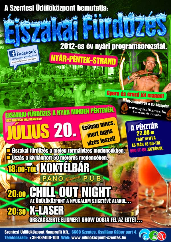 2012. július 20-án az éjszakai fürdőzésen fantasztikus lézer show-t láthatunk. Esőnap nincs, mert úgyis vizesek leszünk! :-). Jöjjön el és érezze jól magát!