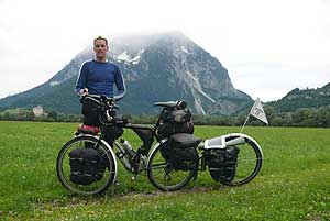 kerékpárossal, aki a Föld körül teker. |