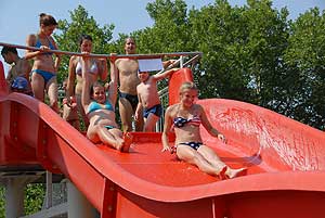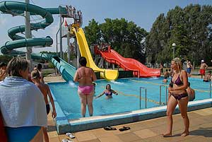Természetesen ki így ki úgy igyekezett magát hűteni. Sokan választották a tiszai strandot, de többen a ligeti fürdő mellett tették le voksukat. A standon járva több busznyi gyermek volt, akik útjukat megszakítva hűsöltek a nyári melegben. Egy pár óra elteltével folytatták útjukat Románia felé.
