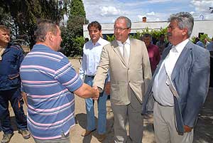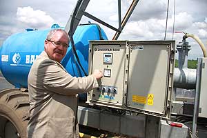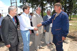 A Kinizsi 2000 Mezőgazdasági Zrt. a folyamatos fejlesztéseknek köszönhetően már közel 1900 hektárt lát el vízzel. A lineár öntözőberendezést Fazekas Sándor miniszter indította el az öntözőrendszer terepen történő megtekintése után.