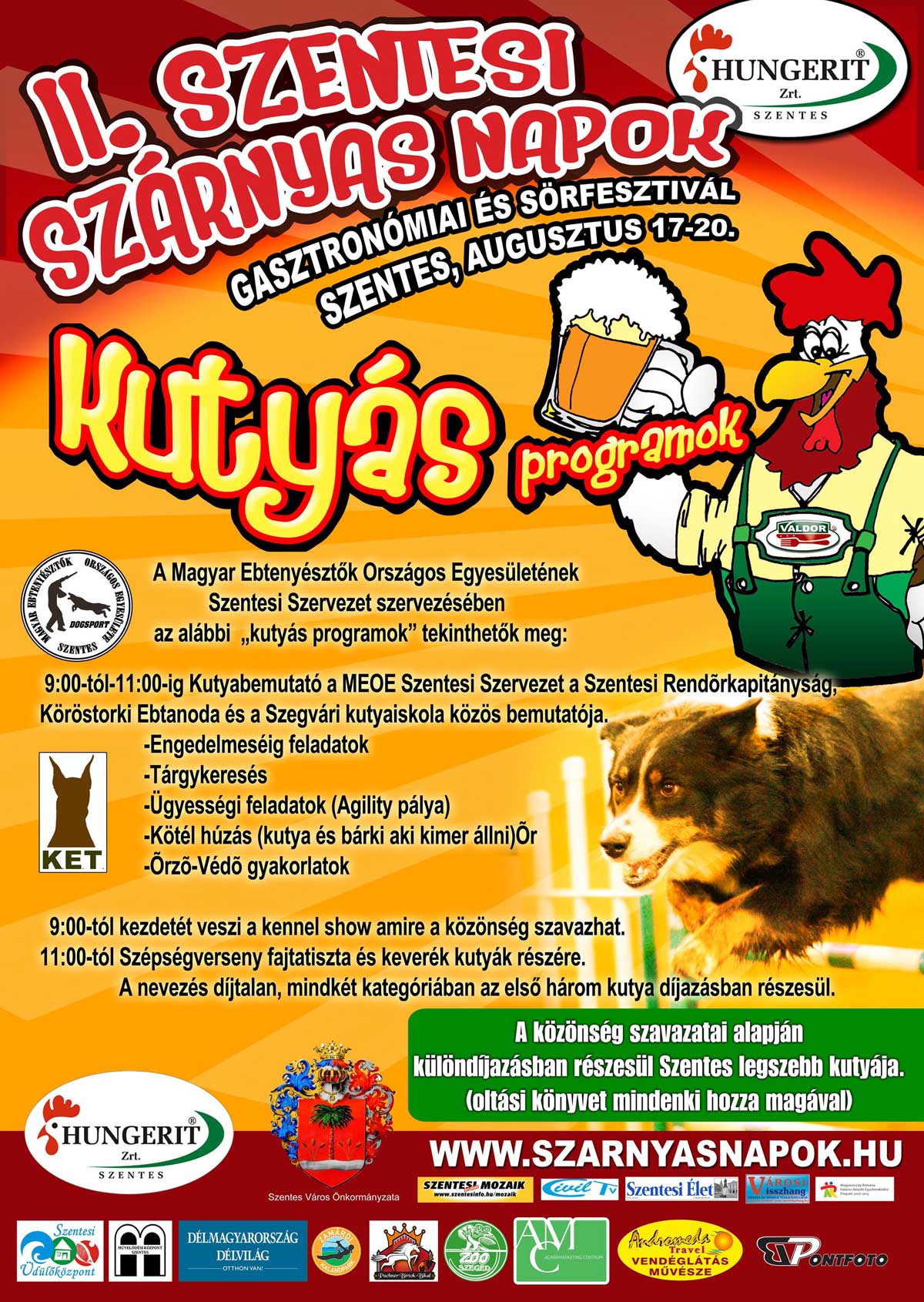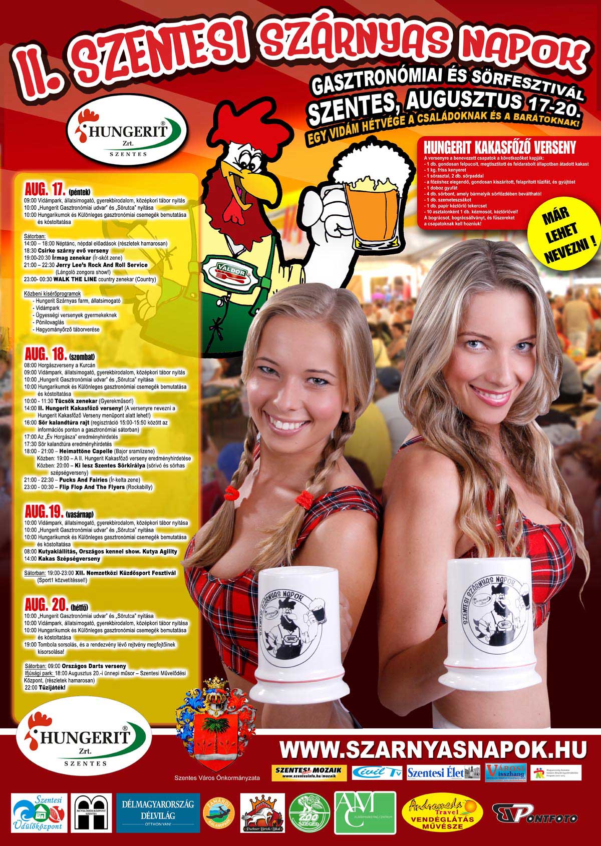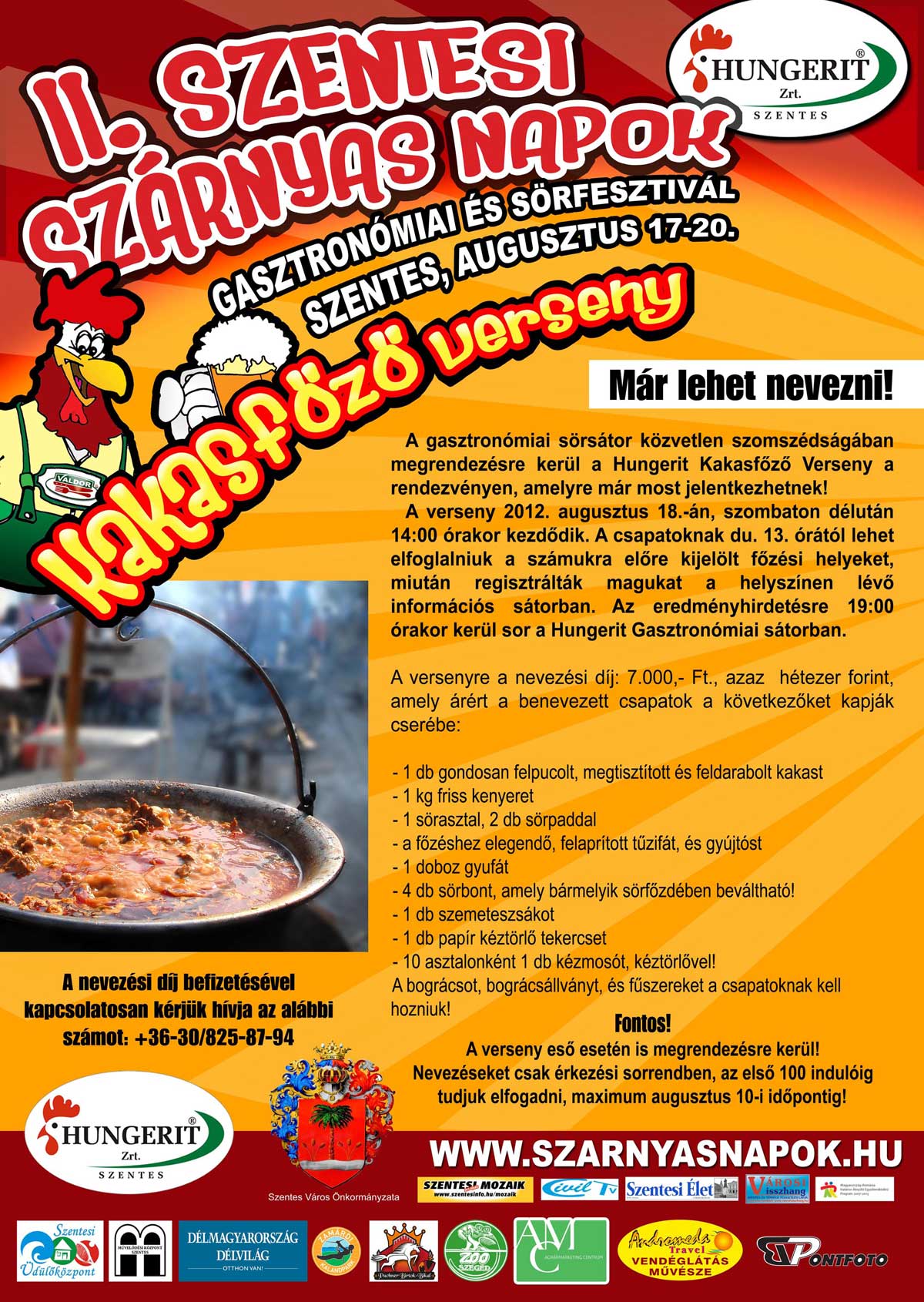 A rendezvény kiemelt támogatója a Hungerit Zrt. baromfifeldolgozó cég, amely termékei világszinten elismertek. A rendezvény minden napja tartogat meglepetéseket, akár ételről, italról, vetélkedőről, vagy sportprogramról is legyen szó.