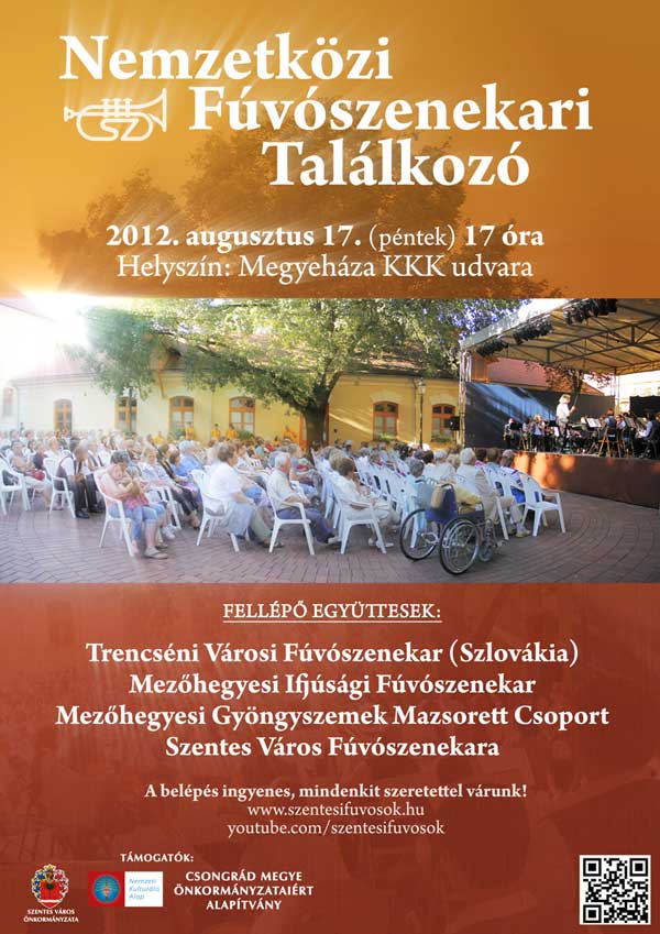 2012. augusztus 17-én Nemzetközi Fúvószenekari Találkozóra várják az érdeklődőket a Megyeháza udvarára. A belépés INGYENES!