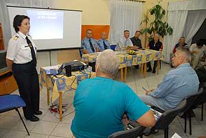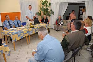 A fórum elején Balogh Sz. Imre rendőrkapitány köszöntötte a megjelenteket, a térség két önkormányzati képviselőjét (Szabó Zoltán, Sipos Antal), a Polgárvédelem megjelent képviselőjét, majd átadta a szót Dr. Orosz Katalin rendőr őrnagynak, aki a vagyonvédelemről és a bűnmegelőzésről tartott Power Point-os beszámolót és a témához kapcsolódva egy oktató kisfilmet is levetített.