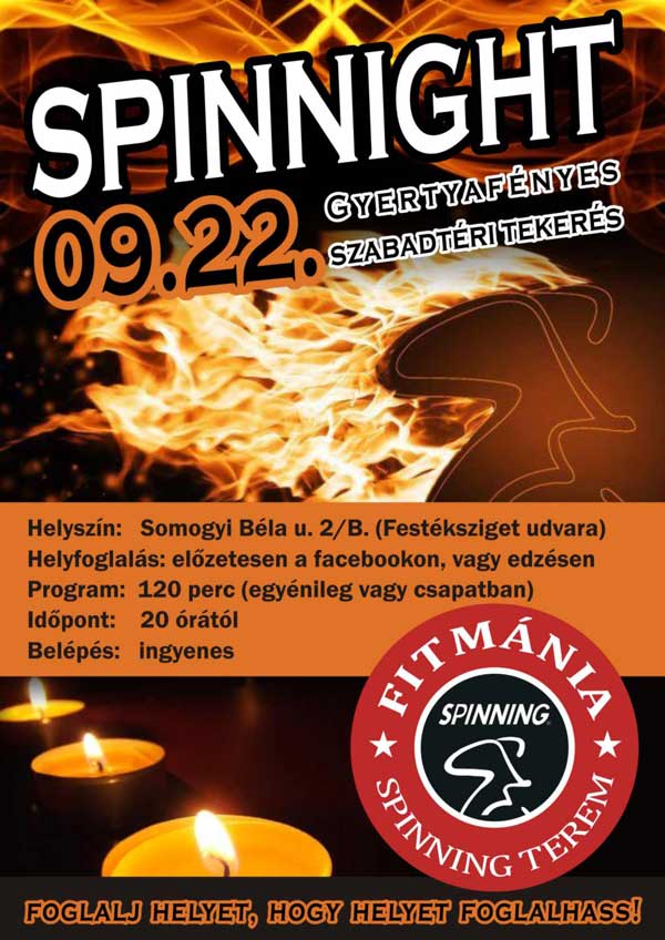 A Somogyi B. u. elején (a Festéksziget udvarán) éjszakai tekerésre várják a sportolni vágyókat. A 2012. szeptember 22-ei rendezvényre a belépés INGYENES, de előtte érdemes helyet foglalni a facebookon, vagy a napi edzésen!