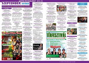 A Szentesi Üdülőközpont Nonprofit Kft. bérleményében lévő, Csallány Gábor part 4 szám alatt lévő Üdülőközpont területén elhelyezkedő 2 db ~46 m2-es hasznos alapterületű, komfortos, 200 m2-es közös használatú teraszos, előkészítő, kiszolgáló, személyzeti és raktárhelyiséggel rendelkező vendéglátó egységek kiadók. A vendéglátó egységeket új bérlőiknek kell berendezni. A leendő bérlő pályázati eljárás keretén belül kerül kiválasztásra. További információk az Üdülőközpont elérhetőségein kérhetők (6600 Szentes, Csallány Gábor part 4. 63-400-122, 30-6300663, info@udulokozpont-szentes.hu). Pályázati csomagok kifizethetők készpénzben a Szentesi Üdülőközpont Nkft pénztárában, átvehetők a Szentesi Üdülőközpont Nkft. titkársági irodájában, 2012. szeptember 6-tól, reggel 8 órától, egészen 2012. szeptember 18-ig, reggel 8 óráig. Katt a képre! Szentes, 2012. 09. 04. Programajánló 2012. szeptember - október