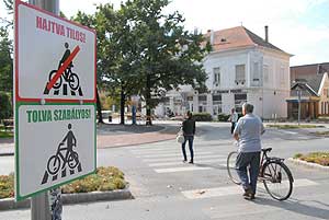 Egy kedves Olvasónk hívta fel a figyelmünket még áprilisban egy hasznos kiegészítő táblára, melyet Békéscsabán látott, hogy Szentesen is lehetne alkalmazni a Kossuth utcai kerékpárúton. A jó ötletet többen támogatták, és a rendőrség is hasznosnak tartotta, hogy még mielőtt a szabálytalanságokhoz hozzá szoknának az emberek, azelőtt így módon nyomatékosítsa a város a gyalogátkelőn való szabályos közlekedést. A Városellátó Intézmény jóvoltából a Kossuth utcán a megfelelő helyekre ki lettek helyezve ezek a táblák, így ha valaki nem ismeri a KRESZ ide vonatkozó passzusát, talán jogkövető magatartást alkalmazva leszáll a bicikliről és áttolja, nem pedig az úton való forgalmat (és önmagát) veszélyezteti. Katt a képre! Szentes, 2012. 09. 26. I. Senior - Junior Fesztivál