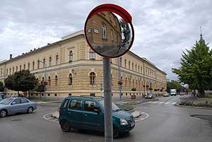 A Városellátó Intézmény a „Bíróság sarkára” oszlop áthelyezéssel kihelyezett egy tükröt! Na nem azért, hogy sokan szembe tudjanak nézni a bíróság épületéből kilépve bűnükkel, hanem hogy a gyalogos és kerékpáros forgalom biztonságosabban tudjon működni.