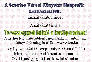 A Szentes Városi Könyvtár Nonprofit Közhasznú Kft. rajzpályázatot hirdet! A pályázat témája: Tervezz egyedi külsőt a kerékpárodnak! A tervhez letölthető sablont a gyermekkönyvtárban vagy a könyvtár honlapján találsz: www.vksz.hu, de a cikk folytatásában mi is közreadjuk! A pályázatot 2012. szeptember 22-én délelőtt lehet leadni az Autómentes napon, a Civil Ifjúságsegítő Kerekasztal sátrában. Az elkészült terveket bíráljuk és díjazzuk korcsoportonként (alsós, felsős, felnőtt). Díjátadó a gyermekkönyvtárban lesz, Petőfi u. 1. 2012. szeptember 26-án 16.30-kor. Katt a képre! Szentes, 2012. 09. 18. Szavazzon mindenki, nyerjen az Olimpiai Tölgy! Szavazzon az Olimpiai tölgyre, hogy az Év Fája versenyben első legyen! (Rajtunk múlik!)