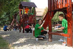 ECSETRE FEL! - kiáltással fogtak neki óvónők, szülők és a CIB Bank szentesi fiókjának dolgozói, hogy 2012. szeptember 29-én délelőtt újra fessék a Damjanich u.-i óvoda udvari játékait és a kerítés belső oldalát. A pénzintézet nem csak a festéket adta, hanem az ott dolgozók is tevékenyen kivették részüket az óvodai festésből. Az óvónők is gyakorolhatták az ecsetkezelést a fajátékokon. Sok-sok szülő is segédkezett ezen a délelőtt, kapartak, drótkeféztek, csiszolt és persze festettek!