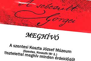 A szentesi Koszta Jözsef Múzeum (Szentes, Kossuth tér 1.) tisztelettel meghív minden érdeklődőt 2012. október 4-én 17 órára a GÖRGEI ÉS KORÁNAK FEGYVEREI című előadásra. Előadó: Papp István őrmester 37. sz. II. Rákóczi Ferenc Műszaki Ezred A belépés ingyenes!
