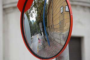 A Városellátó Intézmény a „Bíróság sarkára” oszlop áthelyezéssel kihelyezett egy tükröt! Na nem azért, hogy sokan szembe tudjanak nézni a bíróság épületéből kilépve bűnükkel, hanem hogy a gyalogos és kerékpáros forgalom biztonságosabban tudjon működni.