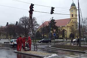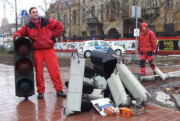 2013. január 30-án a délelőtti órákban, szakadó esőben nekiláttak az évek óta pihenő forgalomirányító lámpának a leszereléséhez. Próbáltunk utána kérdezni, hogy pontosan mikor is állították fel Szentes egyetlen rendőrlámpáját. Csak az évet sikerült kideríteni, hogy 1977-ben adta az első zöldjelzést a forgalomnak. 2002-ben a Szentesi Mozaik évfordulónaptárban mi is megemlékeztünk a lámpa 25. évfordulójáról.
