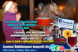 Ki ne ismerné a jellegzetes fahéjas, gyümölcsös, lelket melengető forralt bor illatot. A borongós, sötét, hideg napokon mindenkinek jól esik egy bögre forralt bor vagy egy bögre tea. Gyere és legyél a vendégünk egy bögre forró italra! Minden melegedőt vár a Szentesi Üdülőközpont 2013. január 25-én és február 15-én 14.00-19.00 óra között! Katt a képre! Szentes, 2013. 01. 03. Hatnapos lesz a karácsony 2013-ban Az alábbi cikkben megtekinthetjük 2030-ig mely piros betűs ünnepeink esnek hétköznapra!