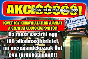 Ismét egy kihagyhatatlan ajánlat a Szentesi Üdülőközponttól! Ha most vásárol egy 100 alkalmas bérletet, mi megajándékozzuk Önt egy fürdőkabinnal!!! Az AKCIÓ a szabad kabinok erejéig érvényes! Kihagyhatatlan!