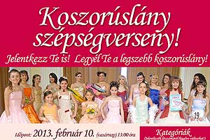 Folyamatosan zajlik a regisztráció a Koszorúslány szépségversenyre, amelyet a Megyeházán február 10-én 13 órakor rendeznek meg a kétnapos VII. Esküvő kiállítás és vásár kereteiben. Három éve vonulhattak fel utoljára a közönség előtt a bátor koszorúslányok - tudtuk meg Bertók Róberttől, a Gladiátor Rendezvényiroda Kft. ügyvezetőjétől, a rendezvény szervezőjétől. A versenyezni vágyók kölcsönzött, otthoni vagy varratott kollekcióban szoktak megjelenni, és elmaradhatatlan a ruhához illő makulátlan smink és frizura. A lényeg, hogy tudjon mosolyogni, és otthonosan mozogni a közönség előtt. A többi már csak a három kategóriában induló hölgyeken múlik: a mosoly, a magabiztosság a leghatékonyabb eszköz a zsűri lefegyverzéséhez, melynek idén Babinyecz Tímea, a 2010-es Miss Universe Hungary győztese lesz az elnöke.