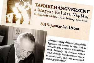 Lajtha László halálának 50. évfordulója tiszteletére 2013. január 22-én 18.00 órakor TANÁRI HANGVERSENYT rendeznek a Magyar Kultúra Napján a Lajtha László Alapfokú Művészeti Iskola koncerttermében. A koncerten közreműködnek a zeneiskola tanárai...