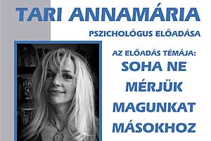 A Szentesi Művelődési Központ szervezésében hallhatjuk Tari Annamária pszichológus előadását a Megyeháza Konferencia és Kulturális Központ dísztermében 2013. február 14-én 18.00 órai kezdettel. A jegyek elővételben 1300,- Ft-os áron vásárolhatók az Ifjúsági Házban és a Babilon Könyvesházban