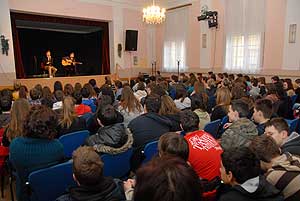 2013. január 22-én a Trendhagyó Irodalomóra egy interaktív koncert volt a Móricz Zsigmond Művelődési Házban, amelyen a Kávészünet duó által megzenésített versek elhangzásán túl, a tanulókkal közös éneklés (verstanulás) és a diákok szavalási lehetősége is szerepet kapott. A repertoárban számos, a kötelező tananyag részét képező vers is szerepelt, de ezeken túlmenően, kortárs költők versei, valamint kevésbé ismert költemények is megszólaltak a nagyjából 45-60 perces előadáson. Katt a képre! Szentes, 2013. 01. 22. Gildában a Zengo