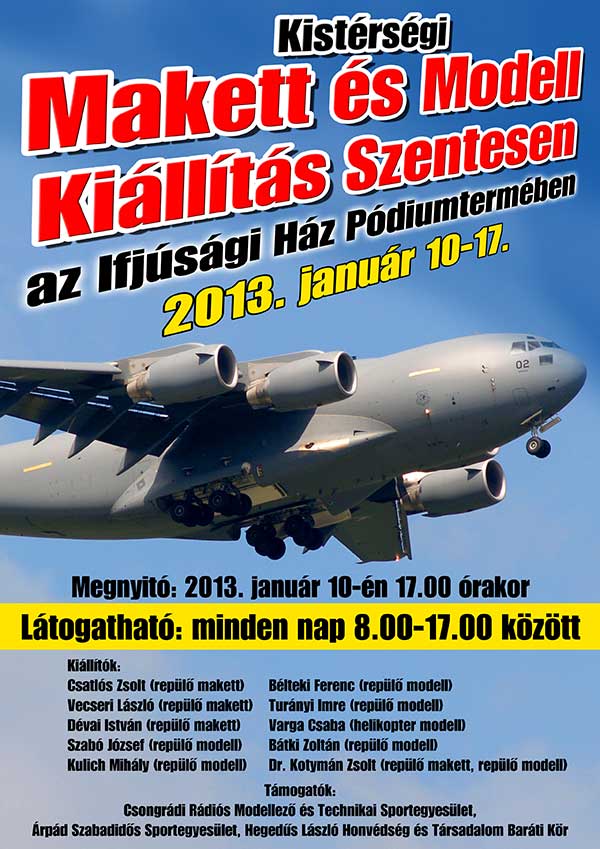 2013. január 10-17. között Kistérségi Makett és Modell kiállítást rendeznek Szentesen a Művelődési és Ifjúsági Házban. A kiállítás 8-17 óra között látogatható!
