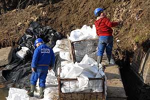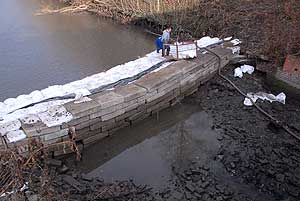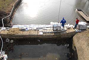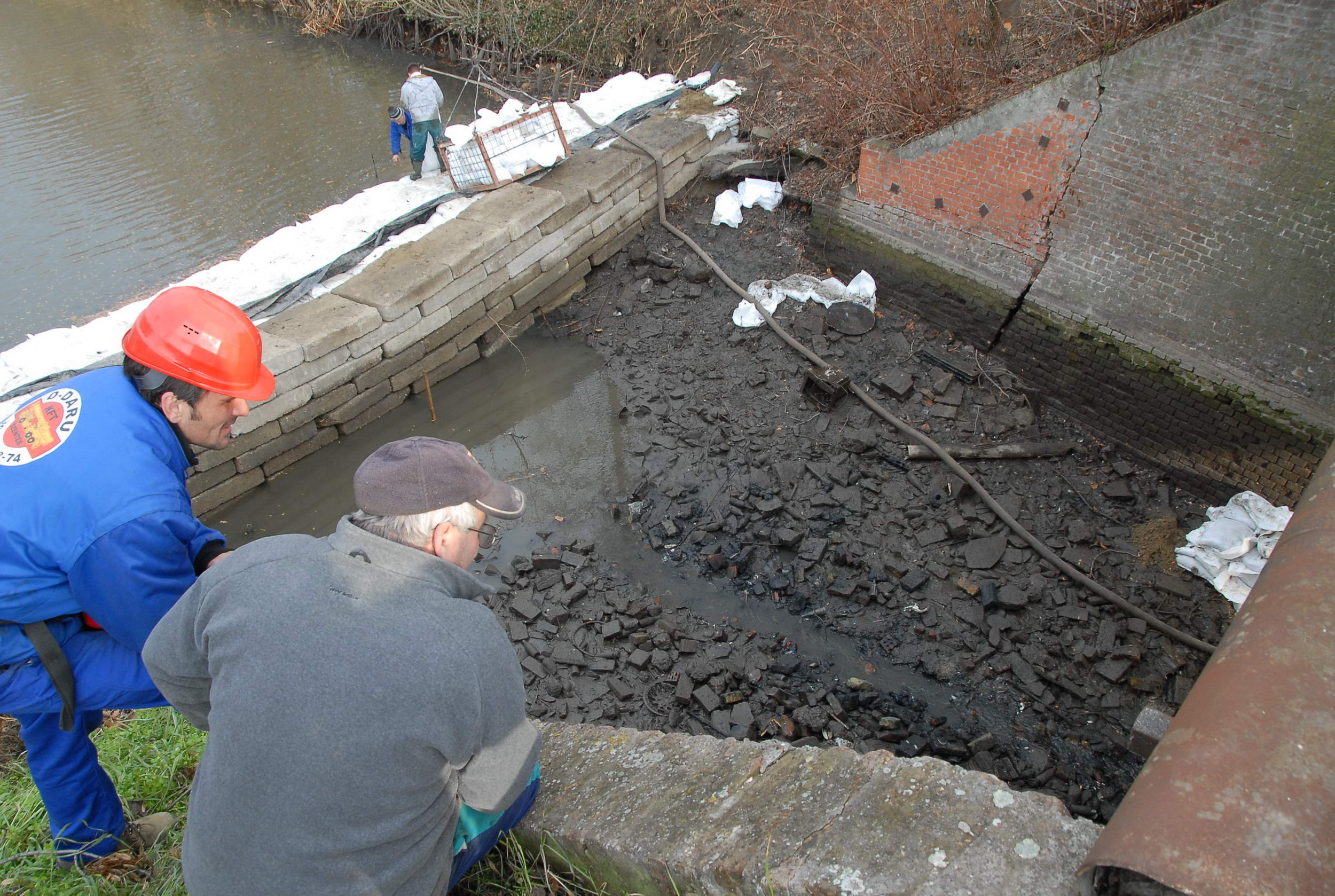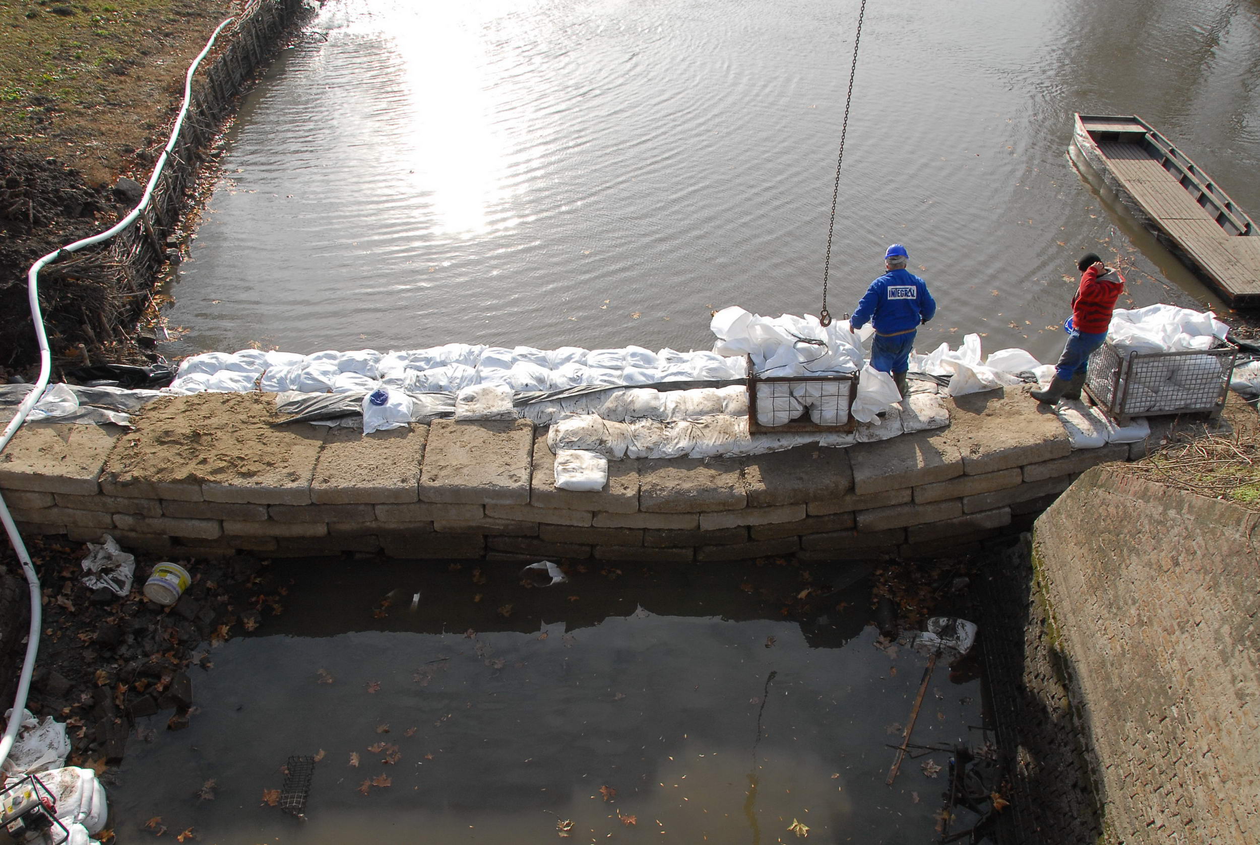 Már egyszer megpróbálták kiszívni a vizet az elzárt mederszakaszról, csak akkor "gátszakadás" történt, azaz a zárás alatt áttört a víz. Most is enged valamelyest, ez igyekeznek elhárítani a szakemberek, de ha nem sikerül, akkor ellennyomó medencét kell építeniük.