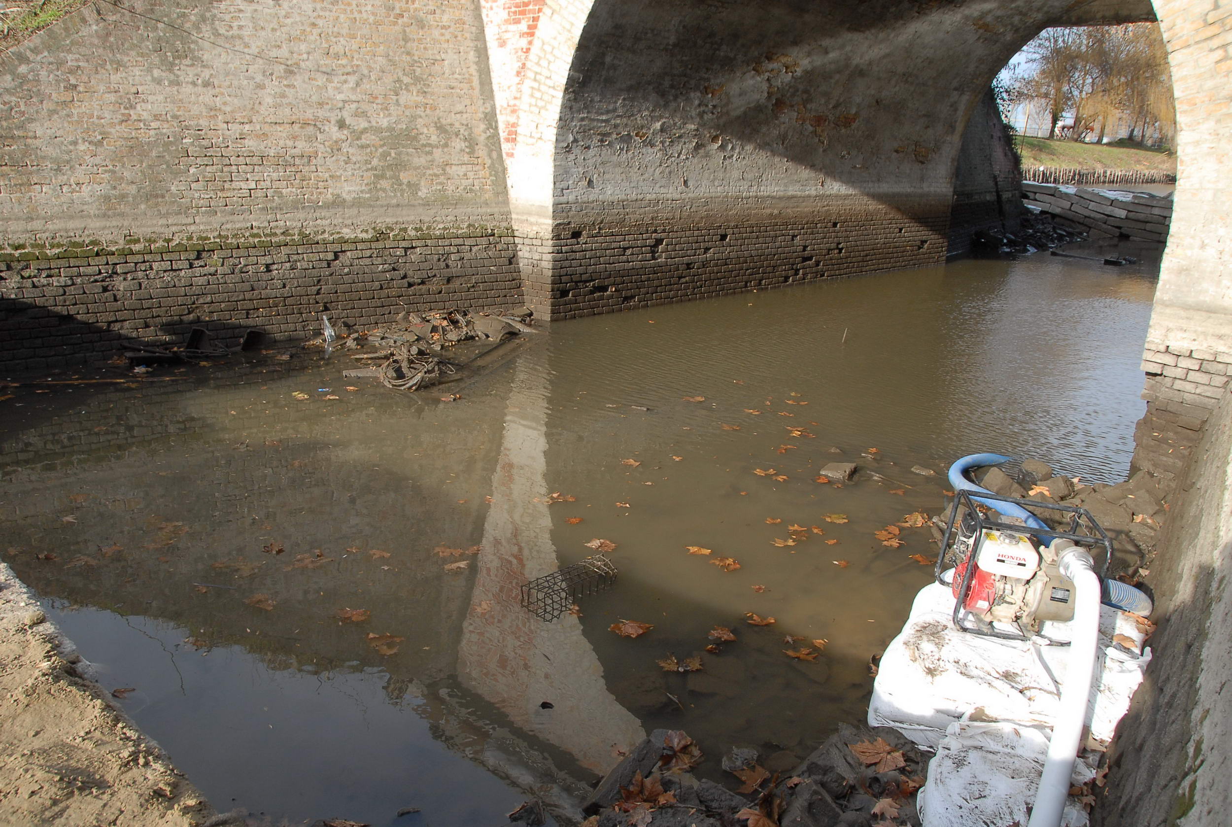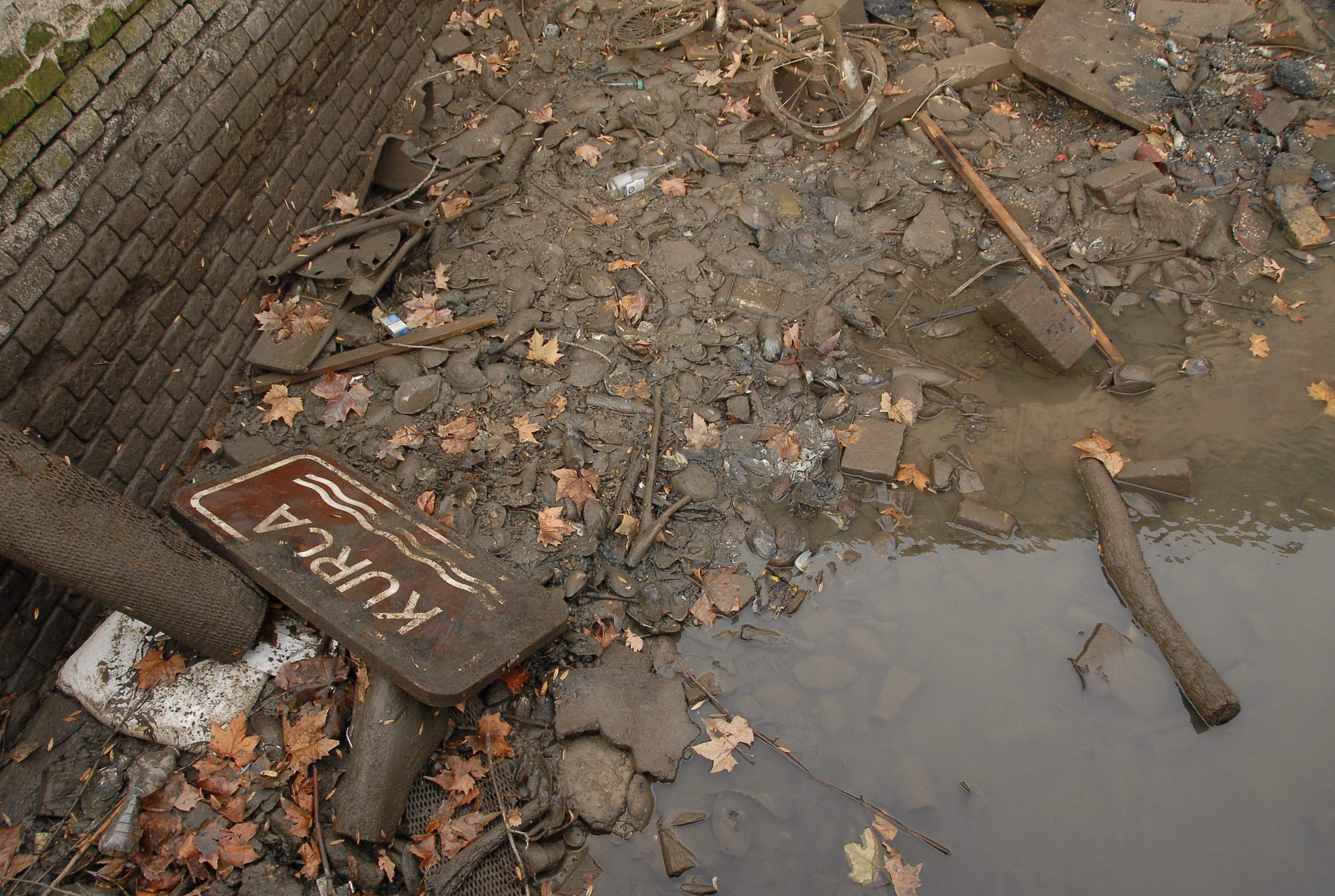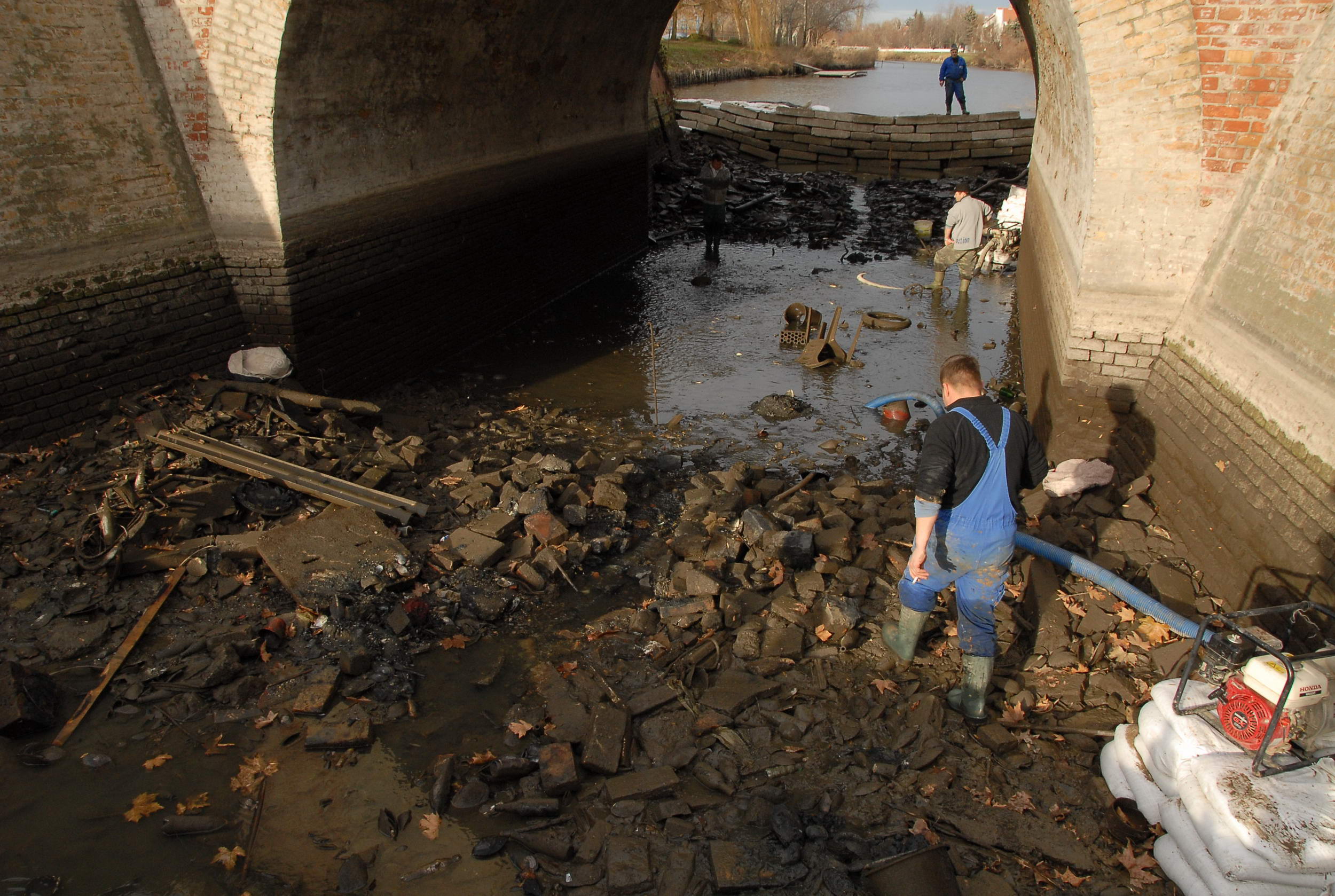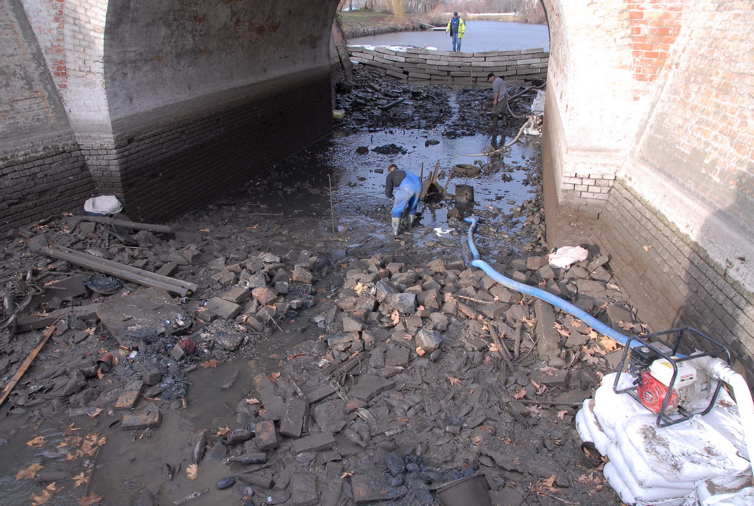 Most sikerült úgy eltorlaszolni a vizet, hogy megkezdődhetett a víz szivattyúzása. Minden járókelő hosszú percekre megállt, hogy megnézze, mit is rejtett a víz a híd alatt. Előkerültek táblák, szétvágott biciklizárak, kerékpárok, babakocsi, radiátor, sok-sok bazaltkocka de monitort is találtak a vízben. Volt még két telefon is, melyek közül az egyik bemutató darab volt még évekkel ezelőtt. A Kurca tábla is előkerült, de a legkülönlegesebb dolog egy nőgyógyászati fogó volt.