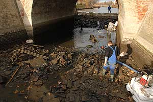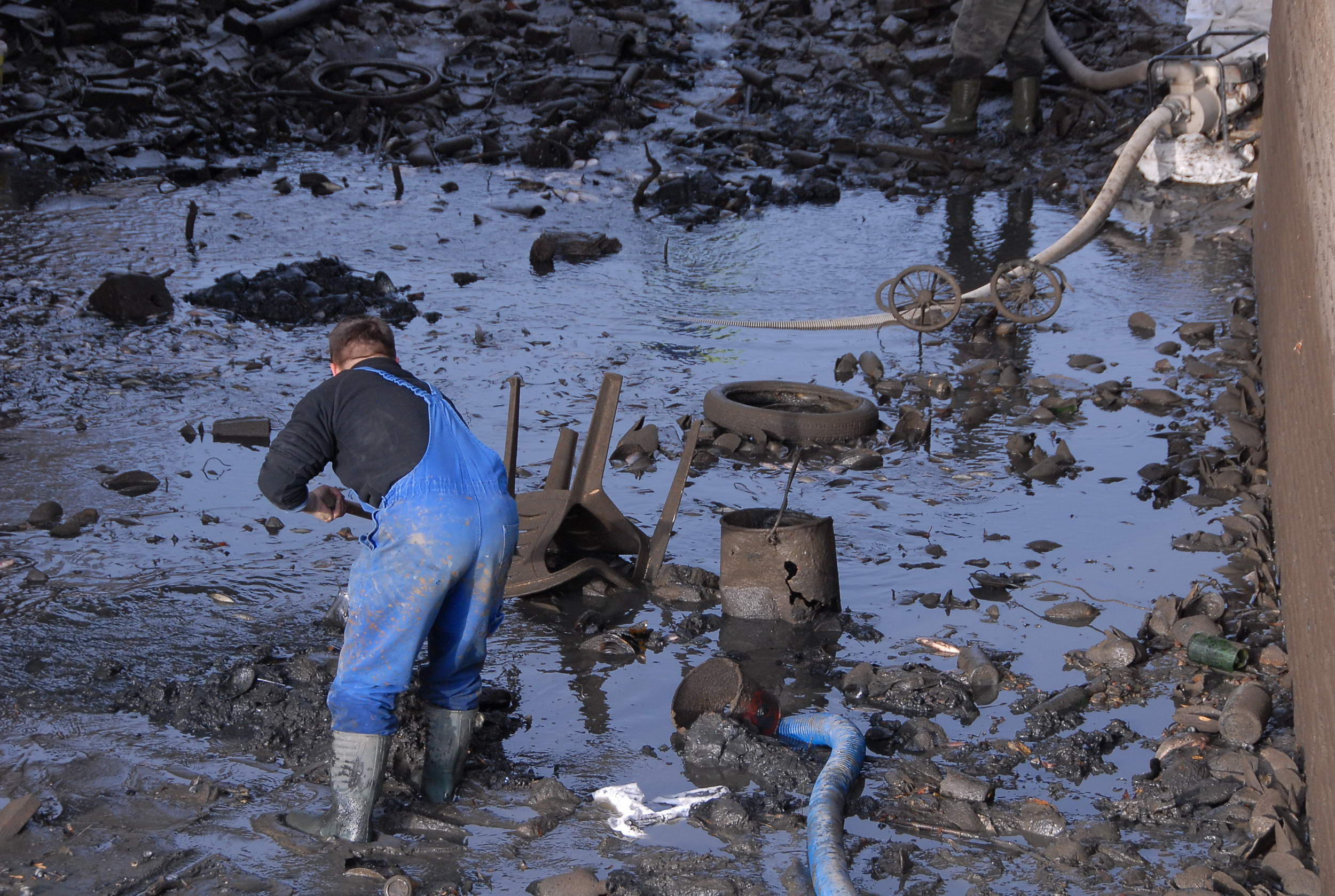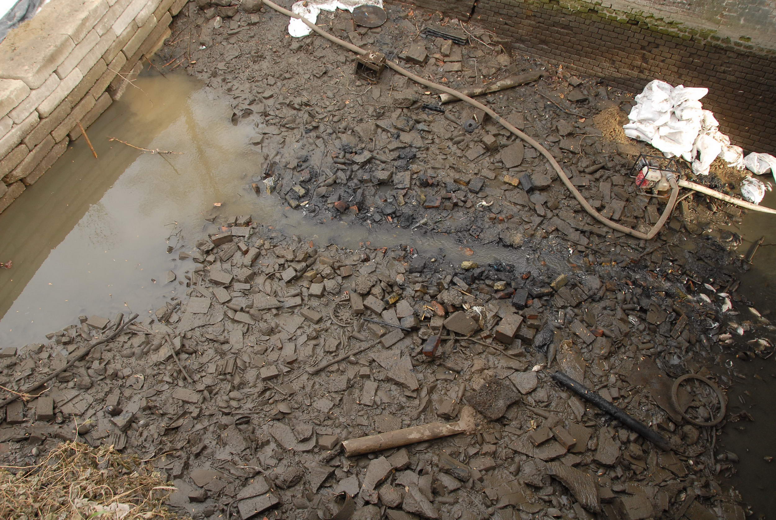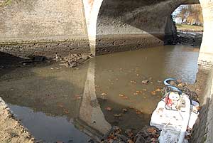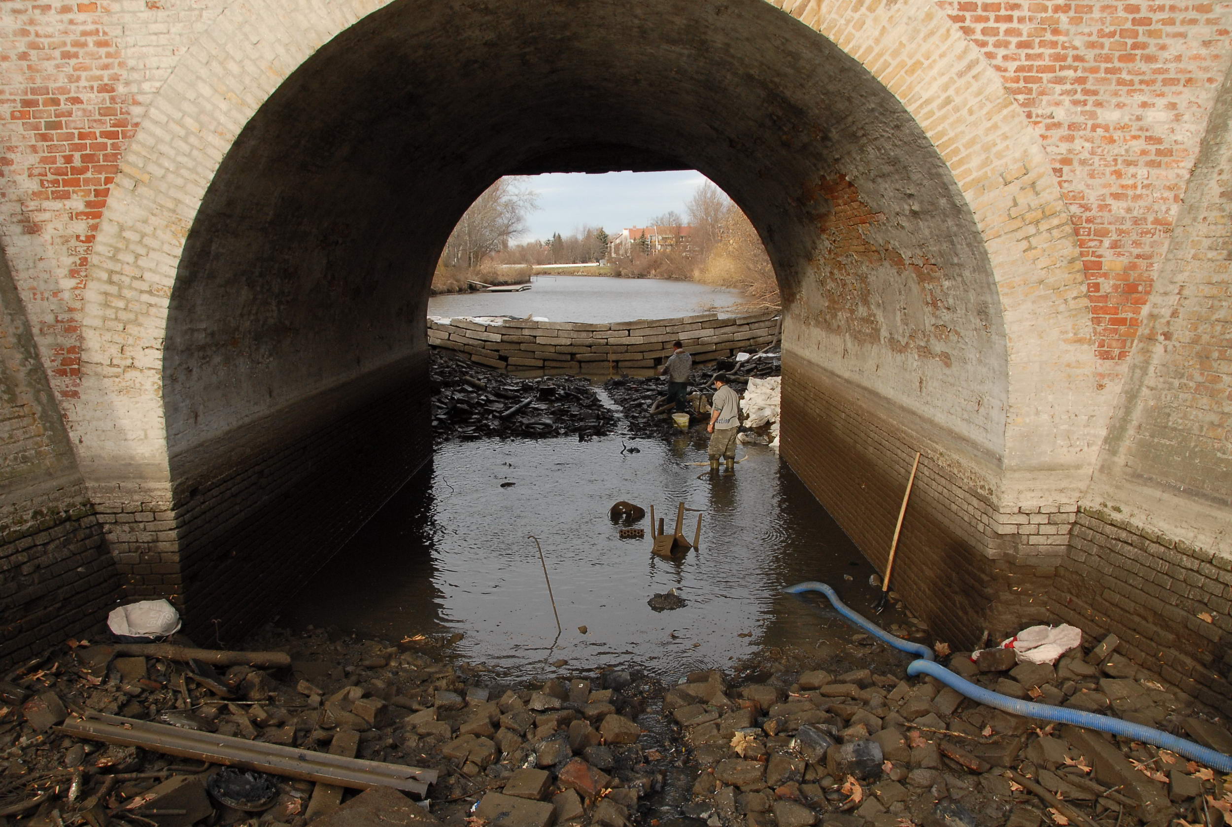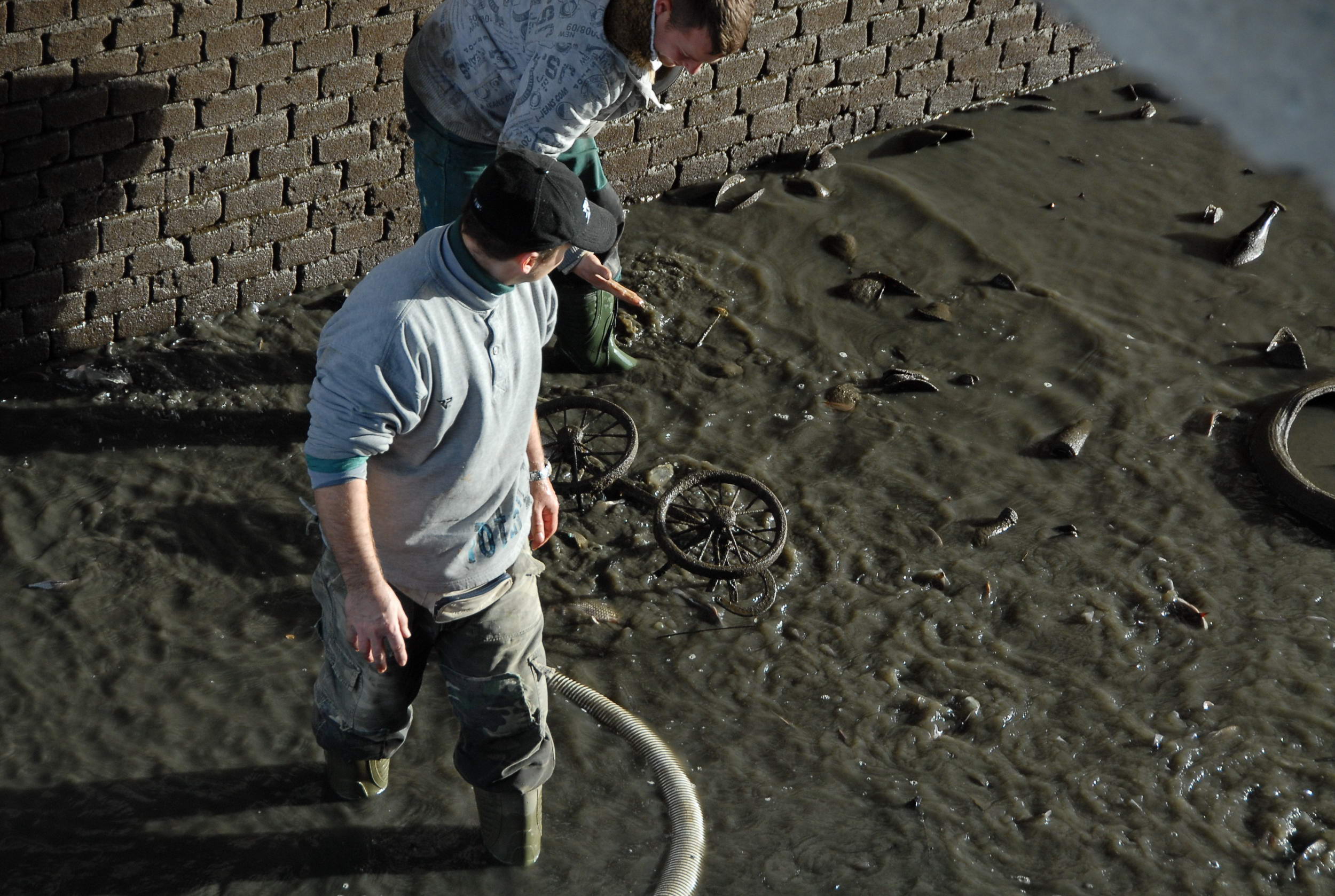 Most sikerült úgy eltorlaszolni a vizet, hogy megkezdődhetett a víz szivattyúzása. Minden járókelő hosszú percekre megállt, hogy megnézze, mit is rejtett a víz a híd alatt. Előkerültek táblák, szétvágott biciklizárak, kerékpárok, babakocsi, radiátor, sok-sok bazaltkocka de monitort is találtak a vízben. Volt még két telefon is, melyek közül az egyik bemutató darab volt még évekkel ezelőtt. A Kurca tábla is előkerült, de a legkülönlegesebb dolog egy nőgyógyászati fogó volt.