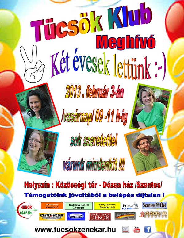 A Tücsök Zenekar minden hónap első vasárnapján Tücsök klubot tart, ahol a gyermekek szakszerű felügyelet mellett játszhatnak, énekelhetnek, táncolhatnak, valamint kézműves foglalkozáson vehetnek részt. Igyekeznek úgy összeállítani a programjaikat, hogy a népdalok, gyermekdalok, a kézműves foglalkozásokon elkészített játékok, eszközök, esetleg dísztárgyak az adott évszak vagy ünnepkör hangulatát tükrözzék. Helyszín: Közösségi tér /Dózsa ház/, 6600 Szentes, Csongrádi út 2.