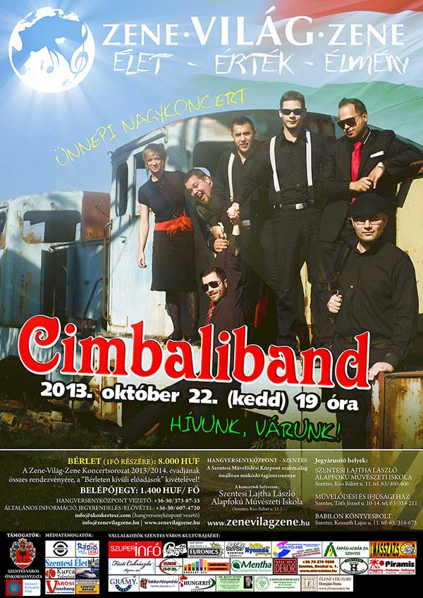 2013. október 22-én 19.00 órai kezdettel igazi zenei csemegét hallhatunk a szentesi Hangversenyközpontban. Ünnepi nagykoncertet ad a Cimbaliband együttes, akik stílusát úgy lehet jellemezni, hogy Kelet- európai cimbalom Rock’n’Roll!